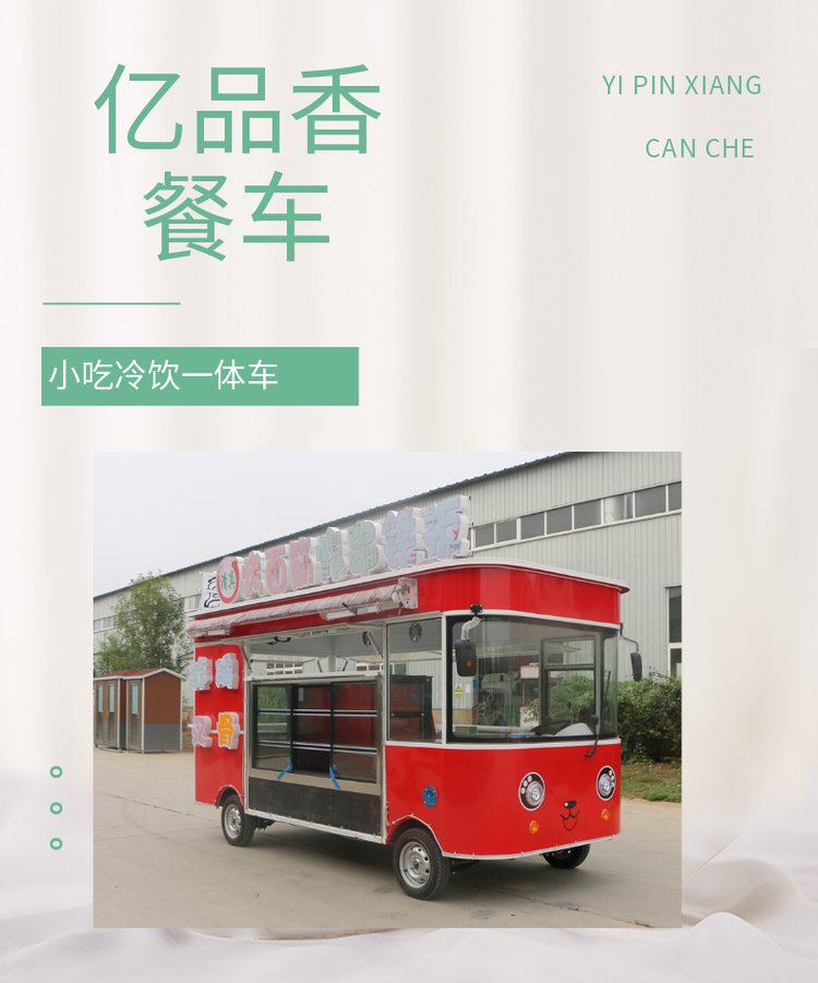 德州市亿品香电动餐车货车制造有限公司是一家集生产、销售各类电动餐车的综合性公司,公司主营产品有:电动货车,单双排,箱货,小吃车、电动餐车及各种早餐车、卖菜车、铁板烧车、油炸车、煎饼果子车、凉皮车、卖水果车、小菜车、熟食车、盒饭车。整车全部钢化玻璃,安全可靠,耐腐蚀、耐高温,质量有保障。餐车做工精良,最大限度保证保证食品不受外界环境污染,同时又不破坏车外的环境卫生,可在各种恶劣天气条件下营业。餐车设计精美,醒目,可吸引所有顾客关注,是城市中一道亮丽的风景,帮你实现致富梦想。