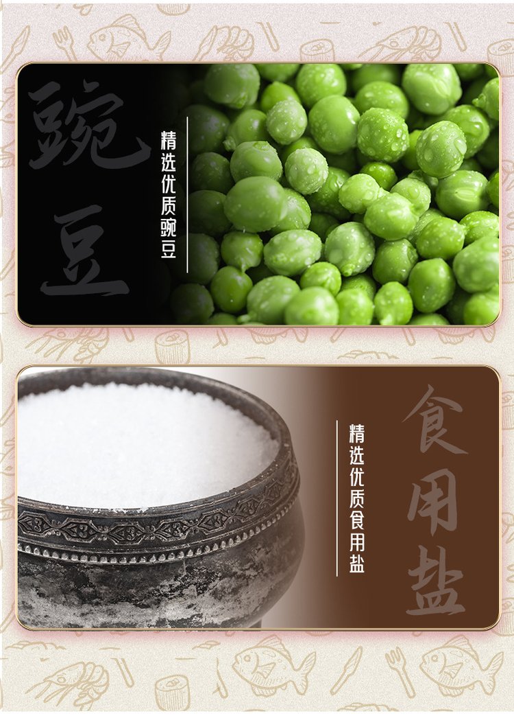 原料与配料 | 豌豆、食用盐、食品添加剂等 | ||