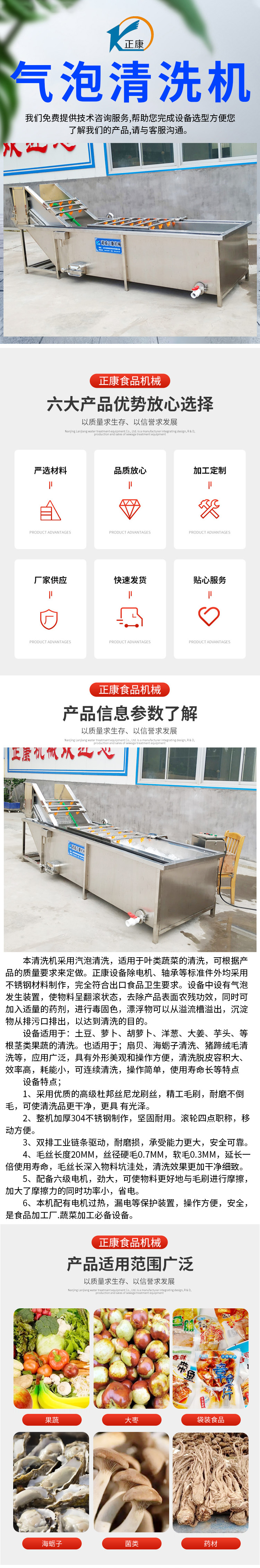 全自动净菜气泡清洗机大型洗菜机中央厨房加工流水线正康机械
