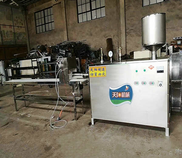 ? ? ? 碱粑又名灰水粑,碱水粑,碱水糕,米豆腐,碱米粑等,食用、贮存方便,主要是以大米或黄玉米加食用碱磨浆发酵蒸制而成,不含任何色素与食品添加剂,色泽金黄剔透,油润绵甜,碱水馍炒腊肉不仅风味独特营养丰富,而且具有开胃驱寒消食等功能。是真正的绿色食品,易消化,老少皆宜,是人们广为喜爱的一种大米或玉米美食,现代工艺是大米或脱皮后的玉米用食用碱浸泡后磨成米浆,然后再用碱水馍机熟化成型。新型碱粑机碱水馍机为机电一体化设计,性能稳定,生产过程无污染,安全卫生,采用电机带动,绞龙转揉挤压,电加热电子自动控温蒸煮熟化成型方式加工碱水馍,仪表显示熟化温度,操作简单方便,省时省工,加工的碱水馍口感细腻,劲道。食用方法:切长条或方块状,放入沸水中煮透后,捞出放入盛有油汤的碗盘中,拌以肉沫、葱花、香油、味精、酱油、食盐、油辣椒等佐料便可食用。也可切成片炒腊肉。新型碱水馍机更换模具和原料还可加工粉条粉丝米线米粉玉米馇条凉粉凉皮等产品。
