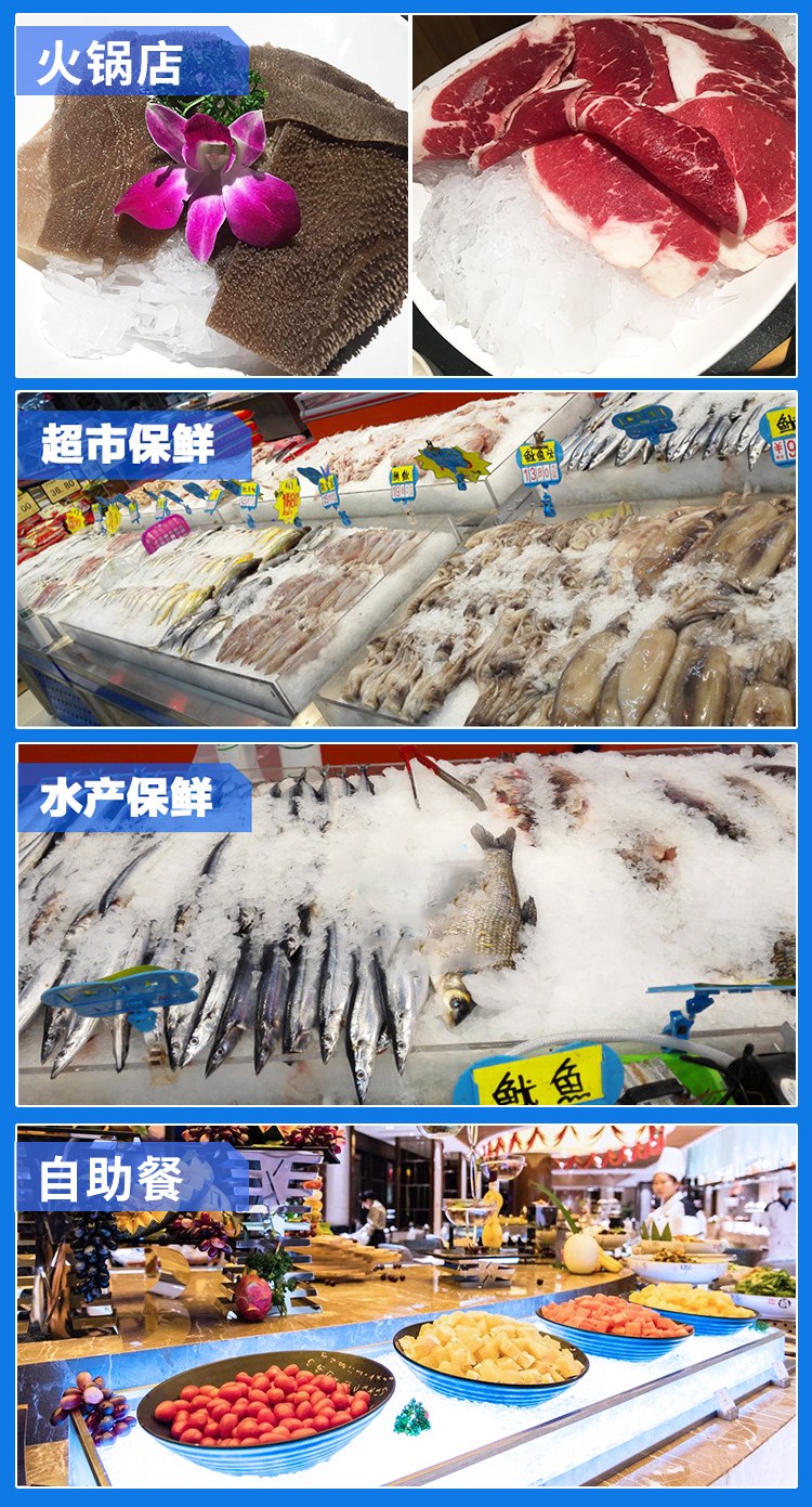 3吨片冰机常以其便捷、低成本及冰的干净晶莹剔透普遍应用于超市或饭店(生鲜)酒店冰鲜。既能有效保鲜,又能为顾客和卖场增加商品陈列的美感,亦会被用于小型水产、肉食加工、屠宰加工行业、蔬菜配送及保鲜、海洋渔业/水产行业、混凝土搅拌工程、化工行业等。