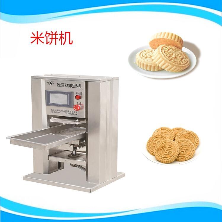 米饼机是新型压块成型设备,是在传统绿豆糕机的基础上,经过一定的技术创新后推出的新型设备,该设备的技术完善,性能稳定,自动化程度高,在生产加工中可实现自动进料、自动压制成型、自动印花、自动出料,整个生产过程简单方便,省时又省力。