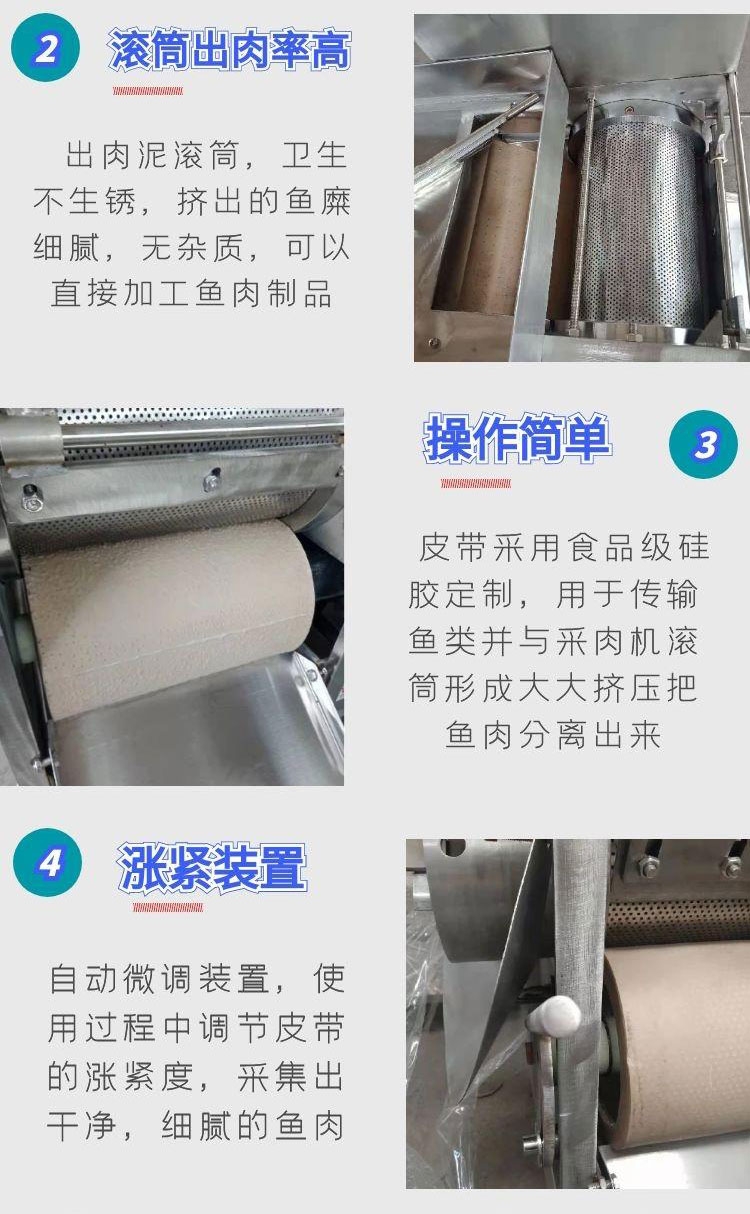 螃蟹肉、 虾肉、鱼肉制品好吃又有营养,现在很多人都喜欢吃虾滑丸子、虾滑水饺、蟹黄棒、蟹黄羹等食品、不管是餐桌上的鱼丸、还是超市里卖的加工制品都非常受到人们的喜爱。但是很多商家在为鱼肉的提取,卫生,产量售后存在很大的疑惑顾虑,这是很多做鱼肉加工产品的老板心声。这些我们都能为您解决。提取出来的鱼肉可作为鱼丸、鱼浆,鱼酱,鱼肉饼,鱼馅饺等等食品原料,自动采鱼肉机大大提高鱼类经济价值。