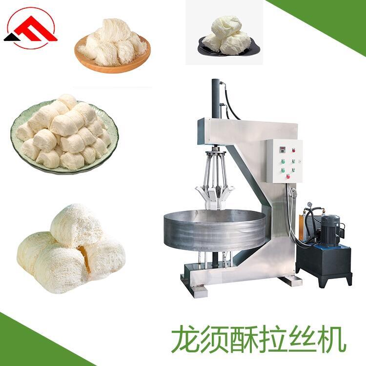 龙须酥拉丝机是龙须酥拉丝加工的主要设备,该设备的拉力均匀,加工出的龙须酥质量更好,口感更佳,使用拉丝机进行龙须酥的生产加工,省时又省力,同时该设备的底部拥有加热系统,这样可降低糖膏的冷却速度,保证了龙须酥的质量和口感。