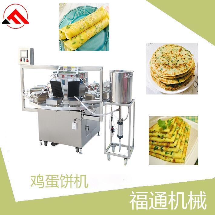 鸡蛋饼机是一种新型设备,该设备的技术完善,性能稳定,在鸡蛋饼机的生产加工中效果突出,是鸡蛋饼等薄饼生产加工的主要设备,该设备的自动化程度高,在鸡蛋饼的生产加工中可实现自动注料、自动压盖、自动起模,整个生产过程简单方便,省时省力,该设备加工的鸡蛋饼颜色跟均匀,口感更佳。