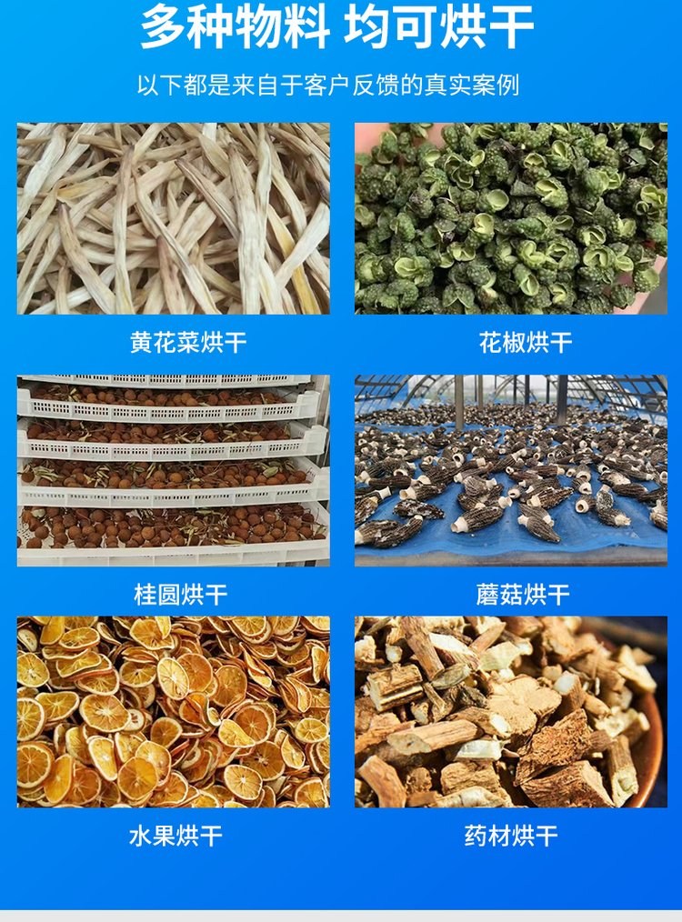 这款海产品烘干机可以烘干的品种有:干贝,虾仁,干海参,墨鱼干,鱿鱼干,鱼肚,紫菜,海带,海胆,石斑鱼,螃蟹,海参,鲍鱼,等等各种各样的海产品,海鲜为了方便保存就会做成干货,这样市场利润也就高很多。