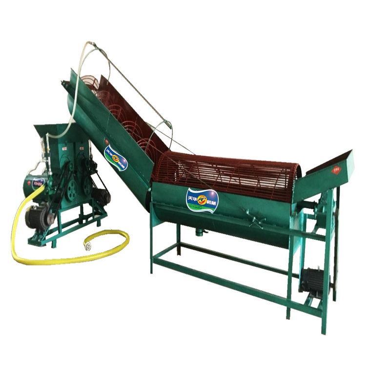 全自动薯类淀粉机(红薯淀粉机,土豆淀粉机,藕粉机、地瓜打粉机)由鼠笼清洗机、斜式上料机、自动破碎渣浆分离机和电机组成,结构合理紧凑,操作简便,清洗、上料、破碎、滤粉、排渣一次性完成,是综合国内外制粉设备的优点,研制生产的投资较小,适用于小型淀粉加工企业、粉条粉丝加工企业、农户加工红薯、土豆、莲藕、芭蕉芋淀粉的理想设备。全自动薯类淀粉机采用电机带动鼠笼转筒缓慢运行,薯藕等浸泡在清水中,一边沿转筒壁作圆周运动,一遍沿送料轴线作直线运动,泥沙、石块、皮渣通过筒底排污口自动排出,洗好的薯藕再经螺旋上料机输送到出料口进入淀粉机的刨丝破碎室中,由高速转动的滚齿将鲜薯刨丝破碎,同时水泵向机器内供水,利用水淘洗方式把淀粉从纤维丝上分离下来,再通过筛网使淀粉浆和渣分离,从两个出口排出,淀粉浆流入沉淀池沉淀,去掉多余的水,吊包干燥或烘干即可。其优点是:1、转笼洗薯,加长了清洗距离,薯藕洗净度高,并可部分去皮。2、刺辊刨丝破碎,把红薯刨成细丝,便于淀粉从纤维丝上分离,且不会堵塞过滤网。3、采用溢流过滤原理,两级淘洗依次进行,充分地延长了粉碎后物料的淘洗时间,使淀粉和纤维有足够的时间进行分离,从而提高淀粉的提取率,同时水可循环使用,节约了用水。