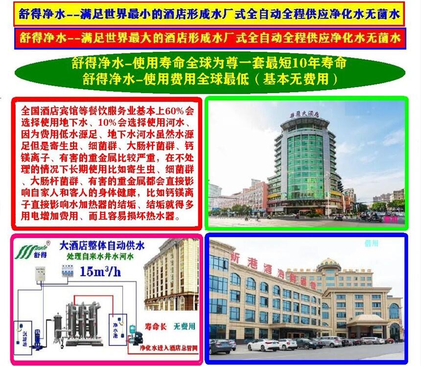 舒得净水设备--可满足世界Z小的酒店形成水厂式全自动全程供应净化水菌无水