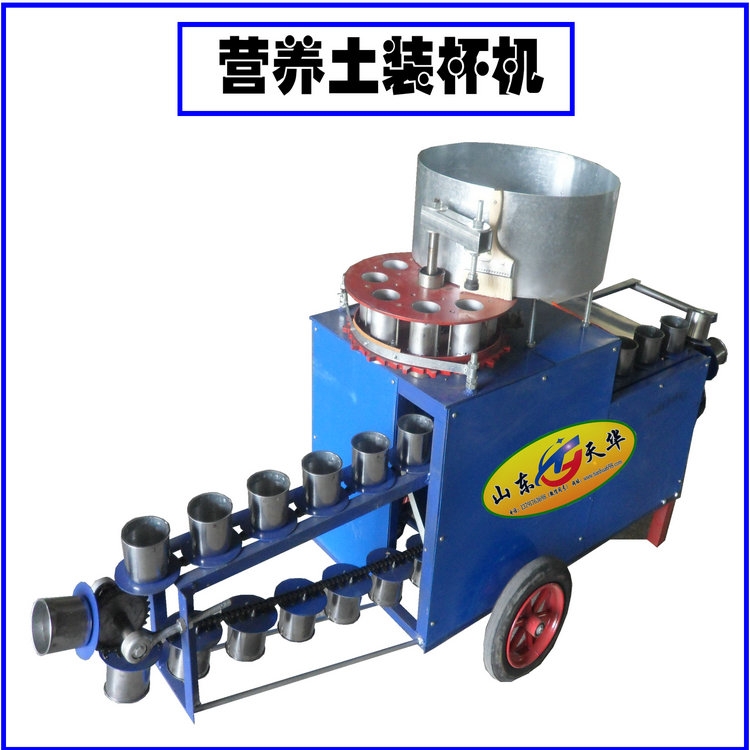 当前大棚种植在农业中的生产作用越来越大,主要作物为蔬菜、花卉,育苗阶段都要用到营养钵,在装土和播种中,装土阶段费时费力,影响育苗效率。现有的营养钵育苗机适合大批量育苗,装土和播种一次完成,但很多时候使用大型育苗机成本太高,特别是单个农户不可能购买大型育苗机,为此,天华机械公司设计生产了小型营养钵装土的机器,适合于农民个体小批量育苗使用。天华营养钵装土机(营养土装钵机)育苗土压钵机由变速箱、喂入机构,钵模盘传动装置等组成,体积小,操作简单,安全可靠拆装维修方便,耐磨损,抗老化,关键部位不锈蚀,汽电两用重量轻,便于田间移动作业。天华营养钵装土机由电机或汽油机带动齿轮箱,使中轴和连杆转动,中轴带动料斗里拨土翅把育苗土喂入料筒中,料筒转动将育苗土定量装入营养钵中,连秆转动完成钵体输送,整个过程中由人工装入和去下钵体。天华营养钵装土机TZB-80,可用2.2KW电机或4P汽油发动机带动,每小时装钵2000-2500个,装钵大小提前定做,外形尺寸1050*1500*1050mm,重量100公斤,价格9600元,不含运费。营养土装钵机,营养土分装机,营养土灌钵机,营养钵装料机,花盆装土机,苗土装盆机,育苗土灌装机,料土分装机,花盆基质装填机,育苗基质装盆机,花盆上土机,花卉盆钵装填机,花盆填土机,有机土装钵机