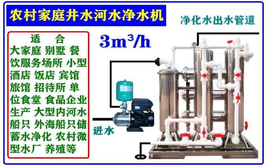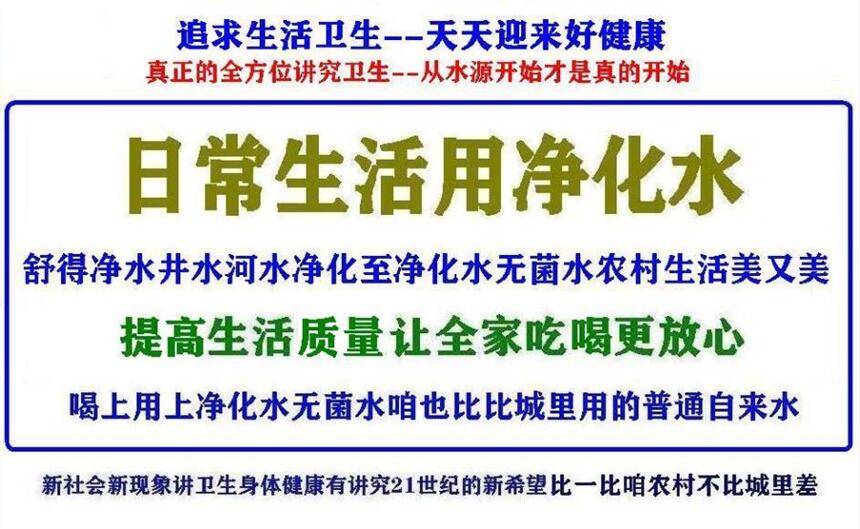 农村山村很多家庭单位餐饮等还是以井水河水为生活用水、因为费用低水源足、地下水河水虽然水源足但是寄身虫、细菌群、大肠杆菌群、钙镁离子、有害的重金属比较严重,在不处理的情况下长期使用比如寄身虫、细菌群、大肠杆菌群、有害的重金属都会直接影响自家人和客人的身体健康,比如钙镁离子直接影响水加热器的结垢、结垢就得多用电费增加费用、而且容易损坏热水器,舒得牌家用净水器是适合农村在生活用水方面的一个改善形态的饮用水净水器,不管家庭使用的自来水还是井水或河水雨水经过舒得牌净水机净化后就可以直接饮用、而且水垢细菌、大肠杆菌都不会再出现、出厂价格直销、没有中间商所以代价很小一次购买使用10-20年应该时间更长。