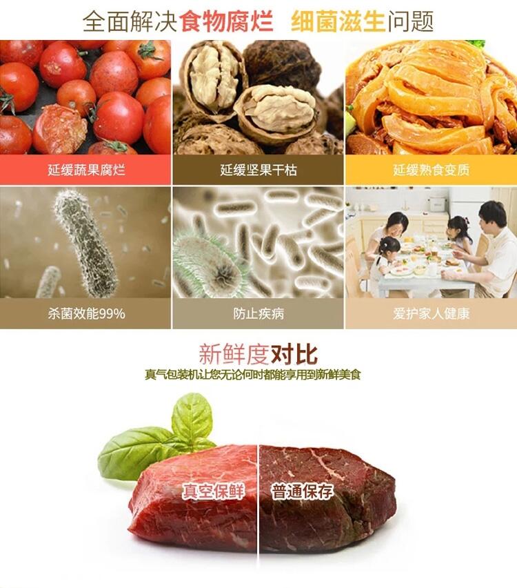 1.功能:该机械可将包装袋内抽成真空后、立即自动封口,袋内真空度高,残留空气少,防止了细菌等微生物的繁殖、避免了物品氧化霉变和腐败、同时对某些松软的物品、经人包装后、可缩小包装体积、便于运输和贮存。