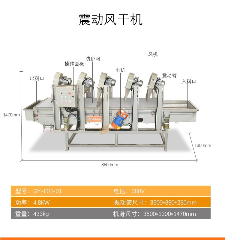 该产品用于叶菜类的加工清洗消毒和切割,顺序分为:原料提升机,两层桃选输送机,大型切菜机,二次提升机,全自动涡流清洗去杂机,震动吹干机,整条线设计,使用更加人性货,自动化程度较高,清洗效果好,不损伤原物料,是净菜加工和中央厨房的理想加工设备。