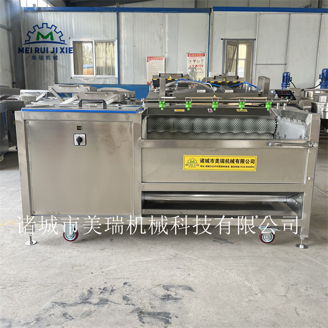山芋清洗机 美瑞山芋去皮机 红薯毛辊清洗机只有在蔬菜清洗机日常操作使用过程中不但可以提高设备的生产效率、将产品直接接触产生摩擦达到去皮、清洗的效果;可达到 根茎类果蔬清洗去皮 去 残留.整机加厚304不锈钢制作,设计有自动高压喷淋喷头进行边去皮边冲洗,还可以更好的延长设备的使用寿命。多注意一些保养细节,使用注意事项,不管什么机械设备,坚固耐用。滚轮四点职称,移动方便。三分靠修,七分靠养。