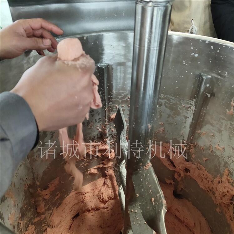 打浆机械肉丸上劲机 小型牛肉丸打浆机价格 食品打浆设备 打浆机是肉丸、贡丸、鱼丸、台湾烤肠等多种肉制品(特别为中高档产品)的主要打浆设备,其产品的口感效果、组织结构、成本控制等技术环节均在于打浆机的选用,所产的肉浆富有口感好,且工作稳定,产量高质量好,升温低。利特机械生产的制冷型肉丸打浆机、馅料打浆机器为卧式,出料方便而且带有制冷层保证原料的口感好。