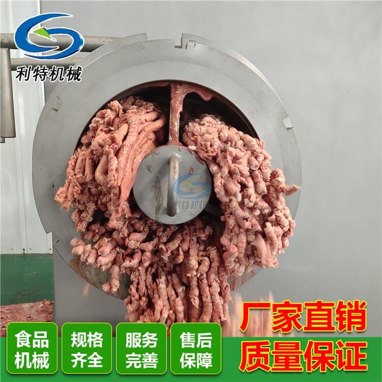 商用电动绞肉机 冻肉绞碎机厂家 肉类破碎机制造商 诸城市利特食品机械有限公司生产的电动绞肉机采用优质不锈钢制造,对加工物料无污染,符合食品卫生标准。 刀具经特殊热处理,耐磨性能优越,使用寿命长。刀组有预切刀、十字刀、孔板刀三把同时进行绞碎,减少了原料的温升,同时提高了了产量。
