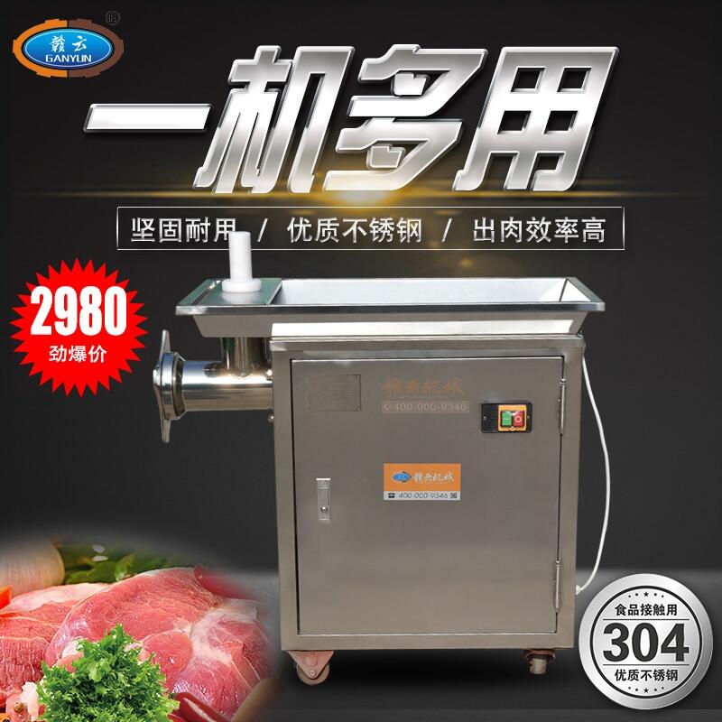 不锈钢绞肉机具有功率小效率高,大大减少人工劳动强度,完全模仿人工绞肉,口感完全是人工剁出来的口味等特点,刀具采用台湾专用刀具 是理想的肉馅加工设备,也是包子店,饺子,店饭店 酒店,连锁店理想的配套设备。 新型绞肉机模仿的是纯手工绞肉的原理,两把刀交替剁在肉板上的鲜肉,此设备解决了绞肉机绞肉时通过挤压出来的肉馅口感问题,可在短时间内把鲜肉绞成肉馅,电机为无级调速,可旋转机头,操作简单,省时省力,剁一次肉的时间在三分钟内,是肉店、饺子店、餐饮连锁店的首选设备。剁肉机所剁肉馅不仅保证了人工所绞肉馅的口感,同时也提高了工作效率。 赣云每一种产品都精工制作。专业质造15年,品质有保障。