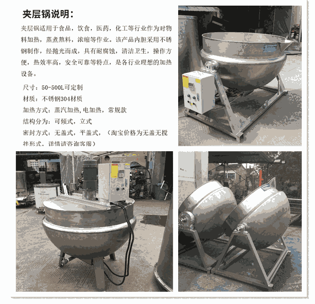 不锈钢自动蒸汽夹层锅可翻转炒料锅蒸煮锅