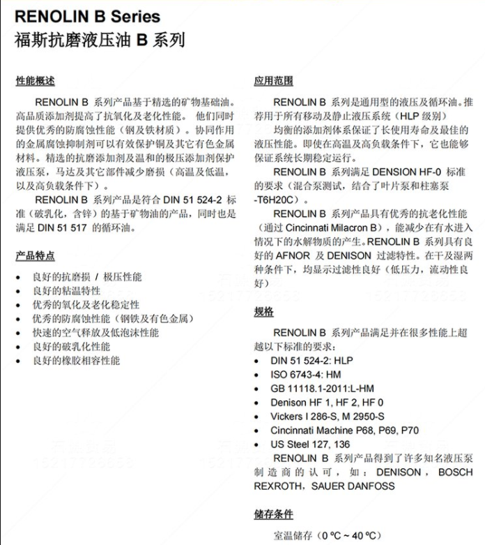 供应德国FUCHSRENOLINB15福斯B15B20抗磨液压油