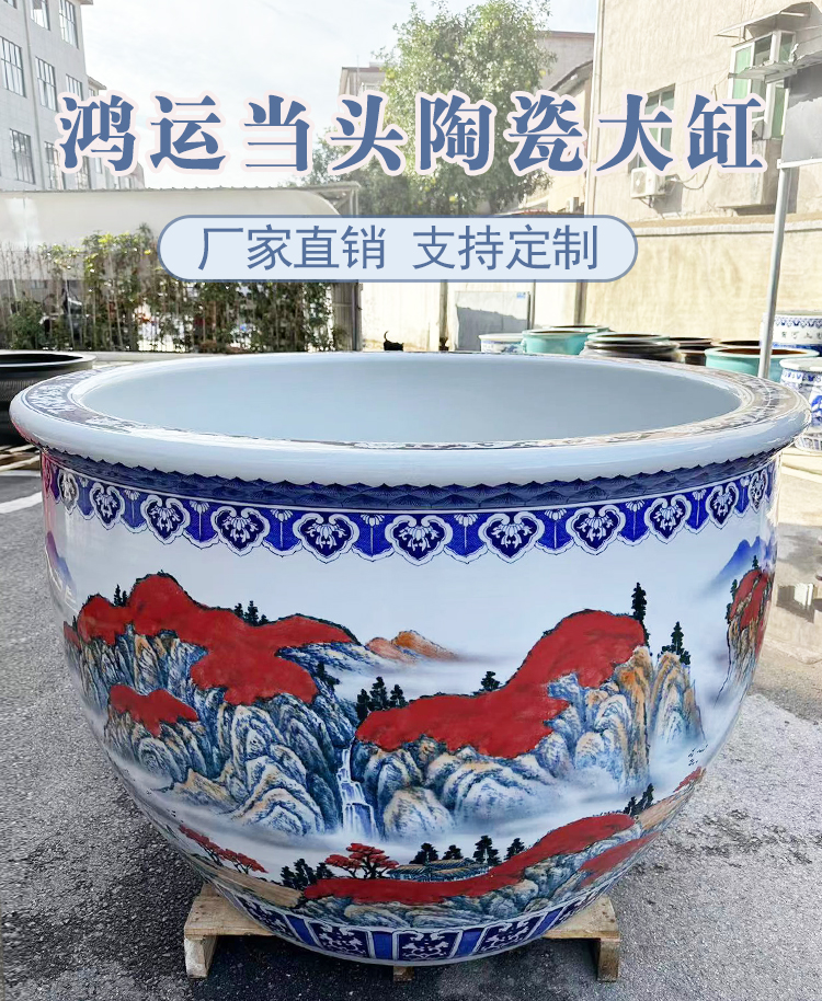 景德镇陶瓷大缸手绘瓷缸金鱼缸锦鲤缸乔迁送礼缸水族箱庭院摆件