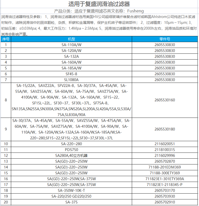 配件名称 | 油分芯 | ||