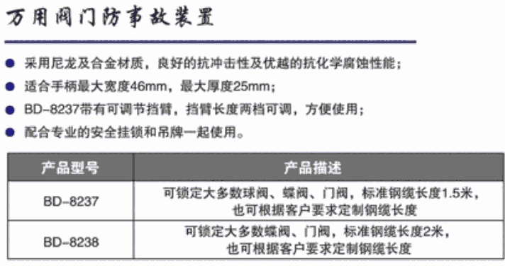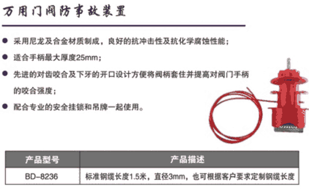万用锁具,可以锁定门阀、球阀、蝶阀,锁定范围广泛,易上锁。