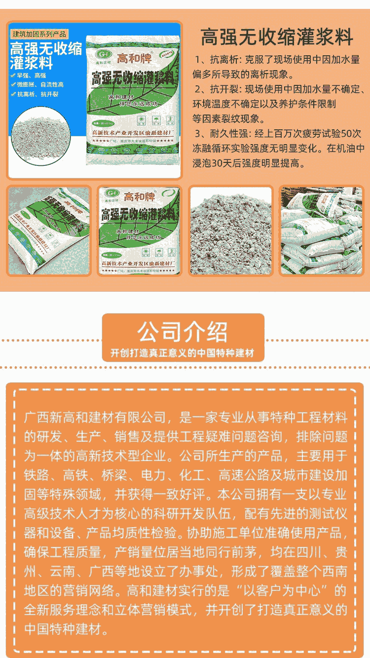 重庆武隆无收缩灌浆料厂家孔道压浆料桥梁加固直销