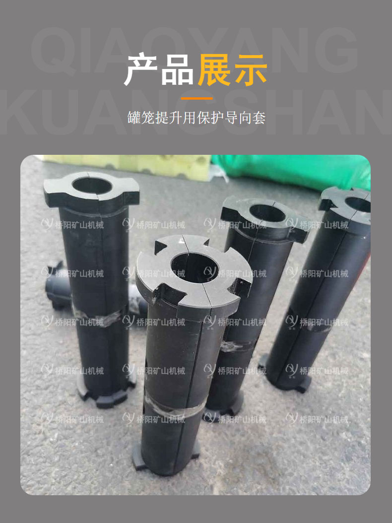 罐笼运行,由于罐笼的运行速度比较高,在运行中应尽量减少钢丝绳的磨损,因此要求导向套硬度较低,而且减磨,并对钢丝绳的磨损较低,因此要求导向套稳绳滑套对钢丝绳的磨损较小。