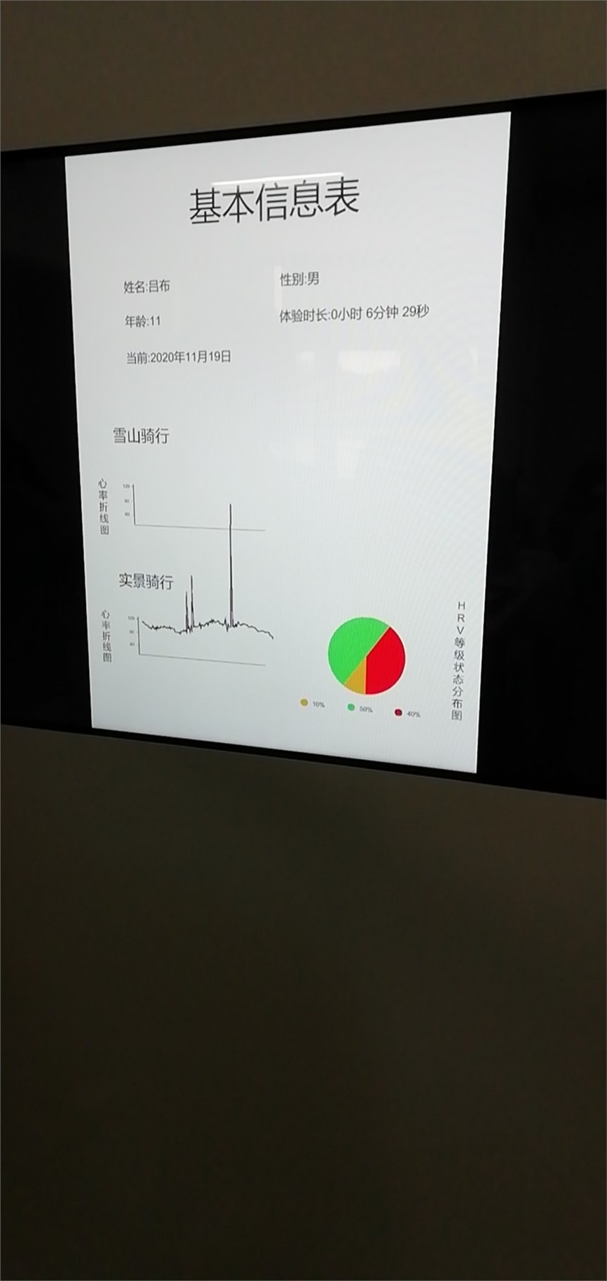 一、产品特点 1、产品功能:运动放松系统包含运动减压、虚拟体验、心理竞技、心灵放松四大模块,通过运动调适单车高科技生物心理采集装置,实时监测采集用户的骑行速度、车行阻力、运动距离、心率、卡路里消耗等经典指标,智能选取专业指导语进行反馈,及时指导体验者进行身心调整,给予积极心理指导,以达良好的调适效果。 2、系统通过勇闯八关、单车越野、漫游阳澄湖、守护阳光等19种不同的心理游戏,以缓解或消除用户紧张、焦虑、抑郁等消极情绪,提升其自控力、专注力和意志力。 3、身心调适运动放松系统是一款以智能单车为载体,通过趣味骑行,以促进体验者心智发展,帮助其达到积极健康的心理状态的智能运动心理产品。通过身体运动的方式,使体验者在运动过程中释放“快乐因子”——多巴胺,有效进行身心调整,达到运动宣泄放松效果。 二、产品配置 1、产品展开尺寸:136*85*55cm;净重:25KG,使用者大负荷重量:100KG、系统可以无线数据传输。 2、 产品特点:3KG磁控惯性轮;EMS电磁阻力控制系统;1pcs曲柄;皮带传动顺畅无声音;鞍座高低可调;车把任意角度转动,前底管条纹脚套,移动方便;单车尺寸:100*61*28,配备单车手柄感应器,可实时进行生理指标(心率)监测。 3、4D互动仿真训练系统; 4、万向车把智能操控系统; 5、生理指标监测反馈系统; 6、训练评估指导管理系统为一体的运动调适放松系统; 7、42寸大屏幕反馈式触摸液晶一体机; 8、智能无线蓝牙连接传输器;