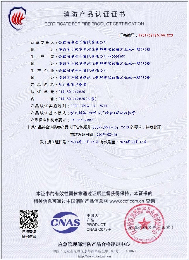 合肥消安电子有限责任公司是一家专业从事防火卷帘控制器的开发、研制、生产的高科技企业,自主研发的FJK-SD-XA2020型防火卷帘控制器是根据国家行业标准《防火卷帘控制器GA386—2002》生产,可广泛应用于控制各类工业建筑、民用建筑及公共建筑中需要防火分割和疏散通道上的各类防火卷帘门。具有结构简单、安装调试方便、可靠性高、抗干扰能力强等优点。