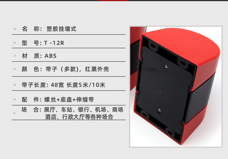 挂墙式伸缩隔离带可定制2米、3米、5米、10米等多种选择,材质也有不锈钢、铁烤漆、钛金、塑料四种可选。客户可根据自己风格,选择适合的材质搭配不同颜色的带子,印刷公司logo或广告语、警示语等。隔离带有20多种色号可选、加上两面广告印刷,既能体现公司形象又是很好的可移动广告牌。