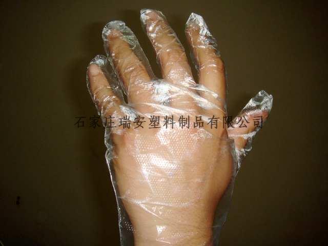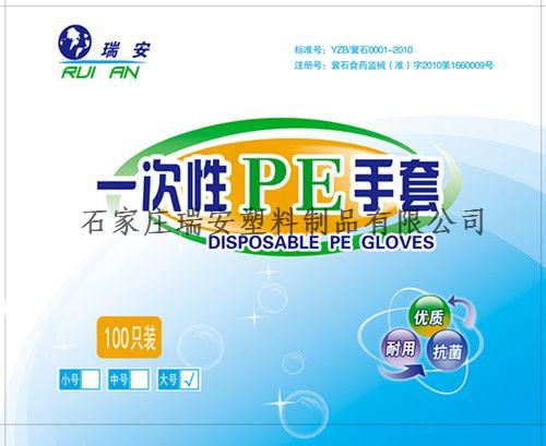 本产品为聚乙烯(PE)吹塑薄膜为原料,经热合成型的一次性使用的卫生手套。