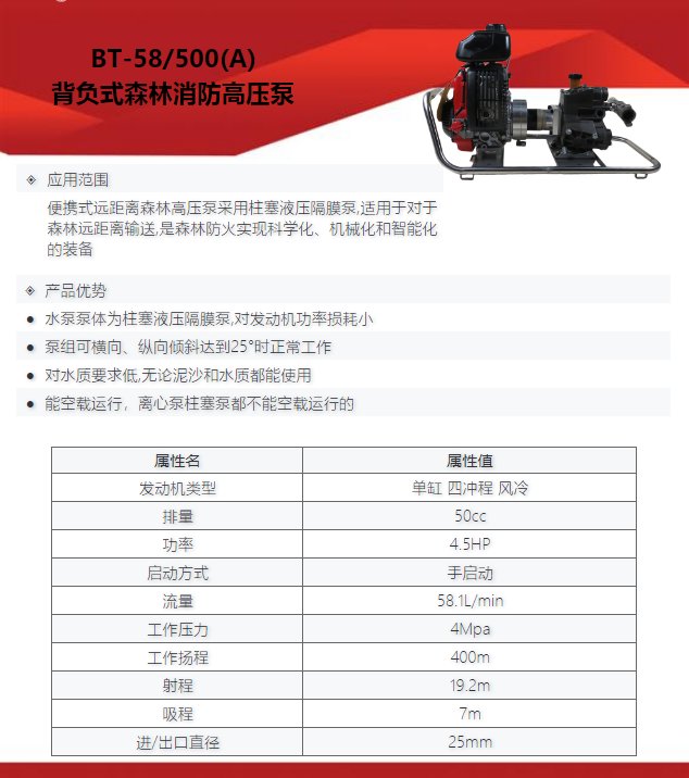 居思安BT-58/500背负式森林消防高压泵便携式远距离泵 品牌 | 居思安 | ||