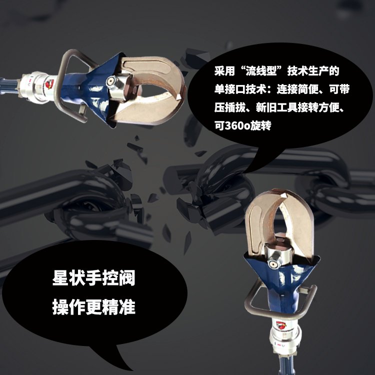 产品特点:重型液压剪切器是根据人体力学设计的一款新一代的重型液压破拆工具,该产品操作简单双管单接就可进行剪切、分离等操作。刀头开合迅速能快速工作,防滑开关控制,使操作更精准。内部采用双向液压锁,具备自锁功能。同时还具有重量轻、灵活性能好、功能性强、机身平衡、省力、便于操作。此外剪切器能完美利用弧形刀片的回拉作用,使其能克服各种结构的车辆。