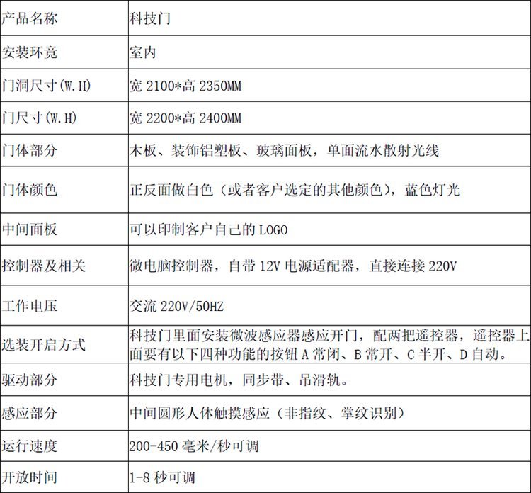 4、安全气囊:感应门的底端装有压力气敏边缘。当感应门在高速下降过程中,当感应门下的物体被按下时,感应门将反向上升到上限位置。