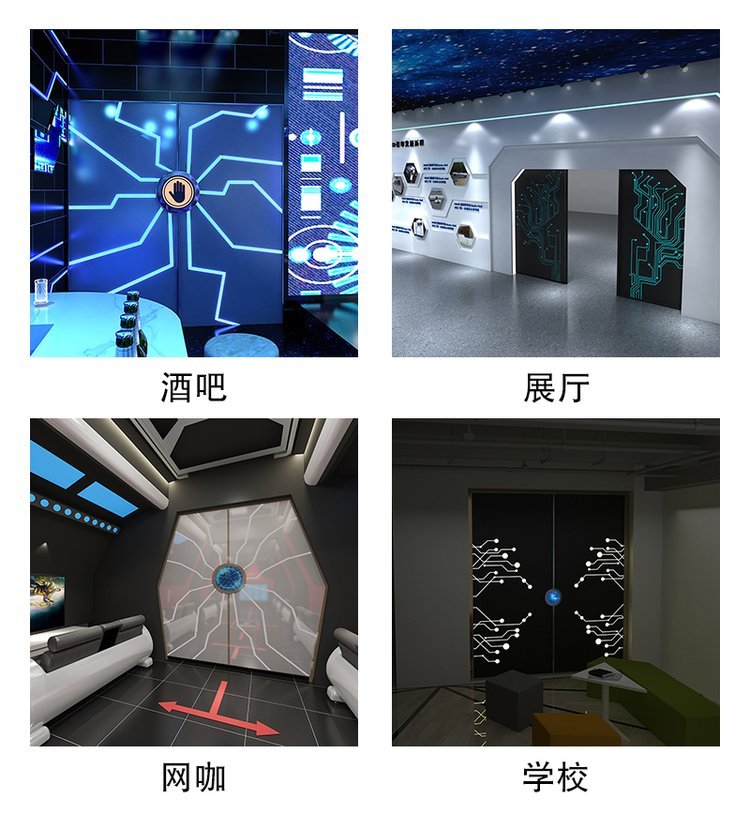 6、联锁装置:当同一使用空间内有两个以上的感应门时,这些感应门的控制系统可以用一根导线联锁。当门打开或处于打开状态时,联锁门不能打开。