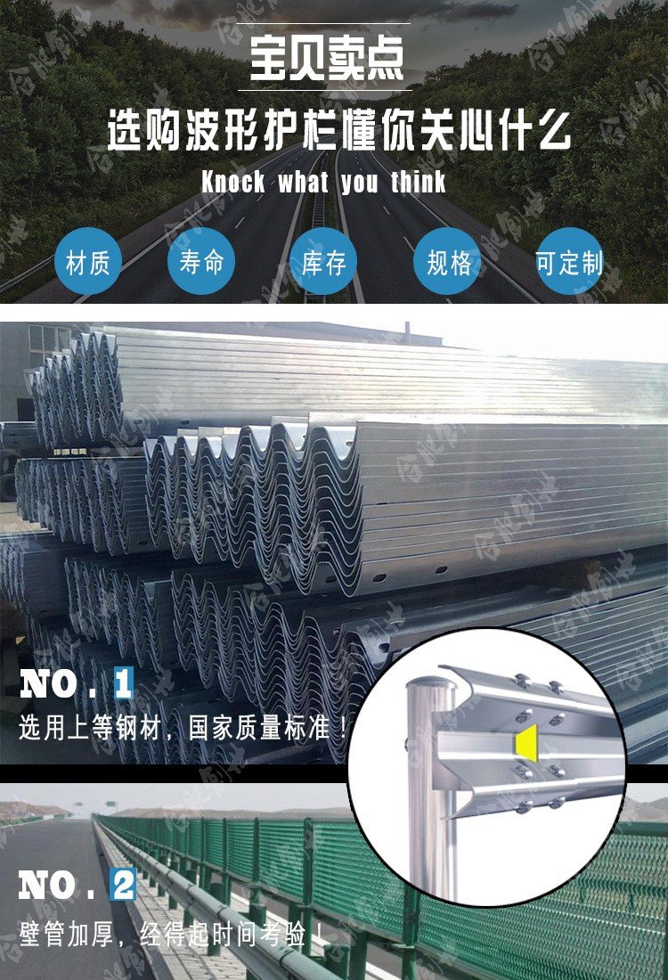 波形梁护栏产品规格:二波护栏板制造工序:优质带钢经压瓦机成二波形钢护栏板型,再经过酸洗,后经热镀锌、冷镀锌、喷塑等防腐处理。