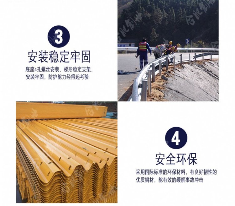 波形梁护栏产品优点:抗冲击性能好、成本低、寿命长、性高、绿色环保;防腐性能好,抗老化,美观大方;安装简便快捷。