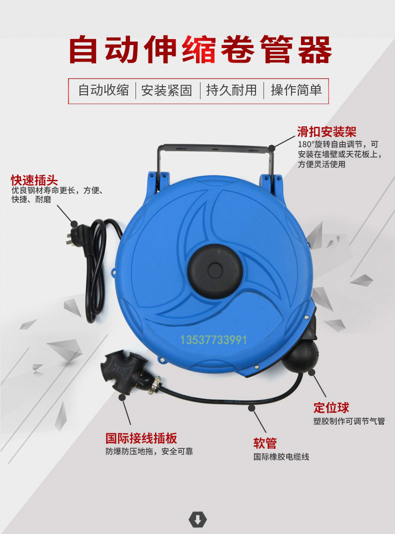 思镒电线自助伸缩卷管器T-4高压电缆自动绕线轴3芯铜质电鼓卷管轴
