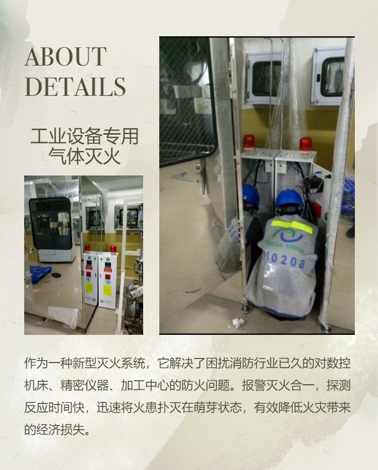 产品问世以来,以其反应速度快、灭火效果好、自动化程度高、节能环保等优点,深受广大客户好评并得以全面推广应用,先后被数百家客户广泛安装在各种数控机床、变配电室和不间断电源室;新能源堆垛机、充放电设备、通讯系统程控交换机房、发电厂控制室、电子设备间、计算机房、变配电间;各种除尘设备、各种实验设备、车辆、移动设备、提升设备、电梯控制柜、通风管道、涂装间等,为厂家和用户提供了大量安全可靠的防火灭火服务。