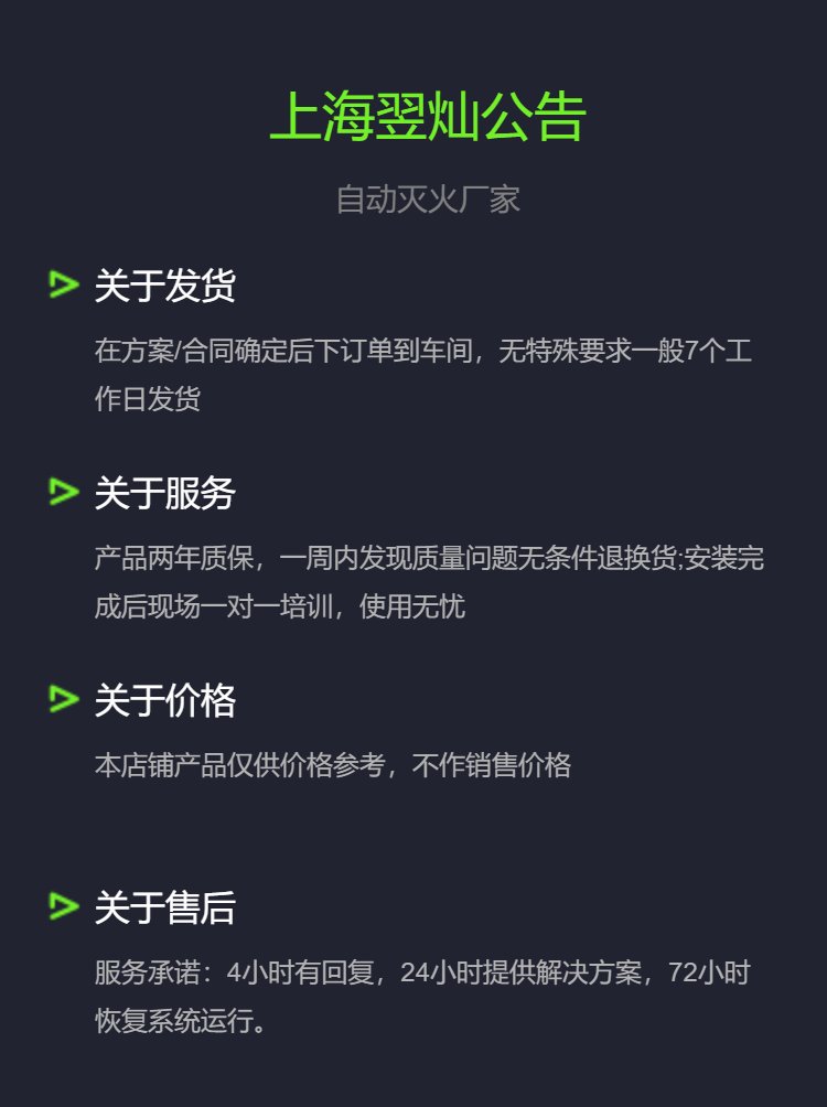 上海翌灿智能科技有限公司,成立于2013年,是经上海市政府批准成立的科技型企业,专业从事消防设备的设计、研发、生产、销售、安装、维护保养于一体的企业,也是中国消防领域的后起之秀,公司主要业务致力于为石油化工、电力通信、交通运输、机械制造等众多行业提供现代化、自动化、智能化防火灭火服务,是中国自启动灭火系统的重点企业之一。