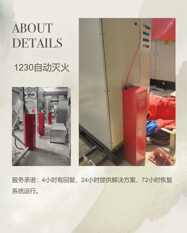产品问世以来,以其反应速度快、灭火效果好、自动化程度高、节能环保等优点,深受广大客户好评并得以全面推广应用,先后被数百家客户广泛安装在各种数控机床、变配电室和不间断电源室;新能源堆垛机、充放电设备、通讯系统程控交换机房、发电厂控制室、电子设备间、计算机房、变配电间;各种除尘设备、各种实验设备、车辆、移动设备、提升设备、电梯控制柜、通风管道、涂装间等,为厂家和用户提供了大量安全可靠的防火灭火服务。
