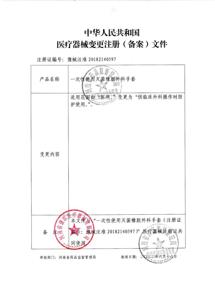 生产许可证 | 豫食药监械生产许20080036号 | ||