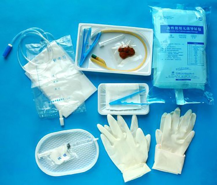 【结构与组成】本产品由基本配置和选配置组成。基本配置:一次性使用无菌导尿管、一次性使用引流袋、医用镊、医用棉球和选用配置:一次性使用医用橡胶检查手套、碘伏棉球、石蜡棉球、医用脱脂纱布块、一次性使用孔巾、物品盒、铺布、无菌用水试管、一次性使用配药用注射器、海绵刷、一次性使用灭菌橡胶外科手套、PE检查手套组成。