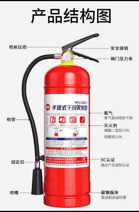 5公斤干粉灭火器新国标90药剂检验认证资质全宇安消防常年供应