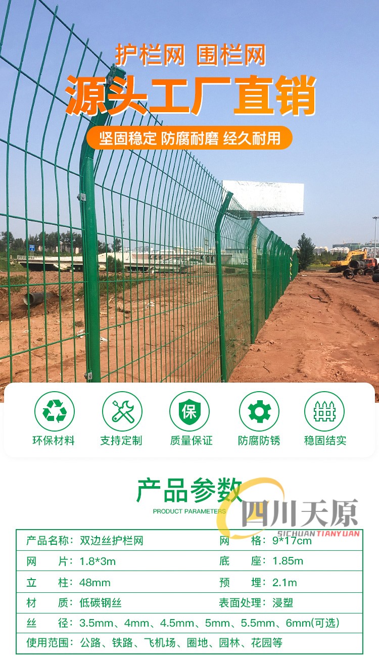光伏电站围栏网景区公园隔离网圈地围栏双边丝浸塑护栏网样式简单