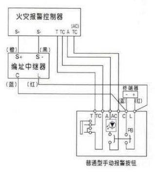 普通型的手动报警按钮,通过编址中继器JZ-R21-F与火灾报警控制器主信号线相连接来确定其地址编码。将露出型的底盒去掉即为埋入型。