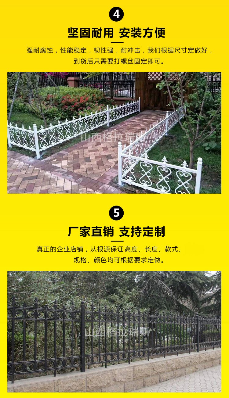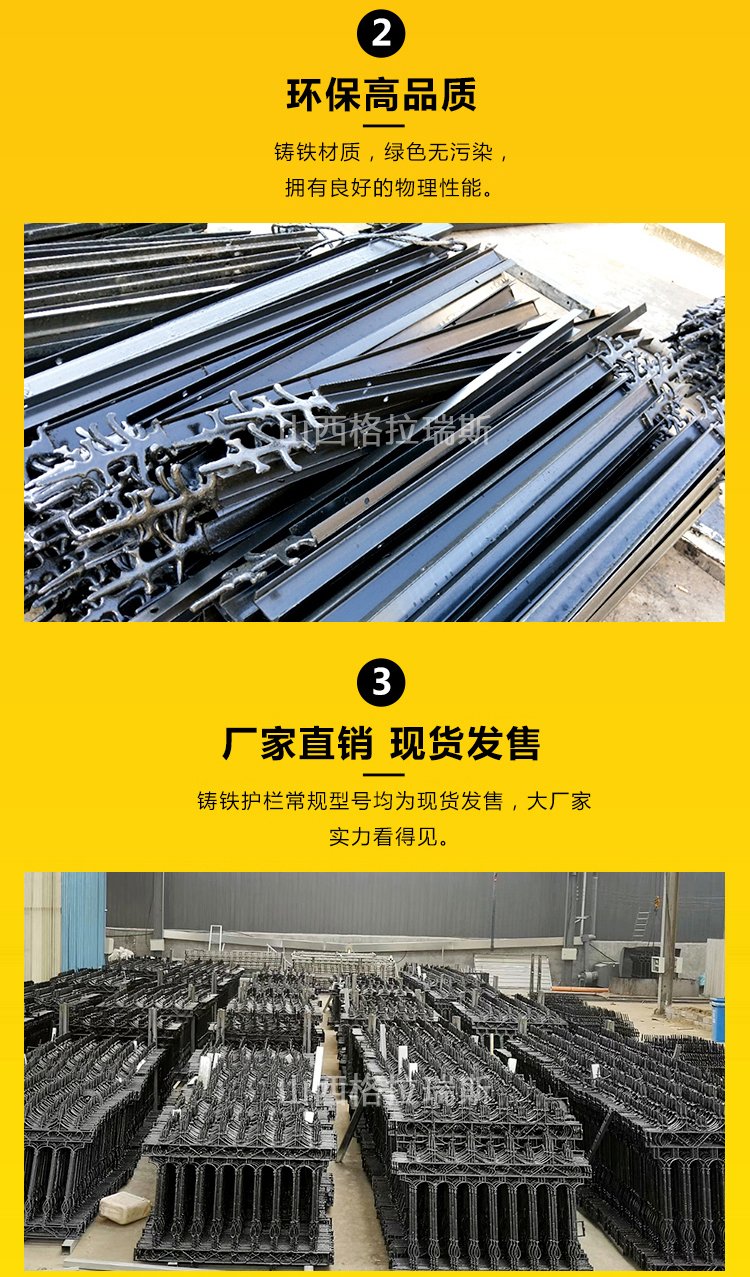 ? ? ? ?山西格拉瑞斯护栏厂家专业生产铸铁围栏、铁艺护栏、小区别墅铁艺围栏、带花纹铁艺定制等护栏产品。厂家直销,欢迎大家来电咨询