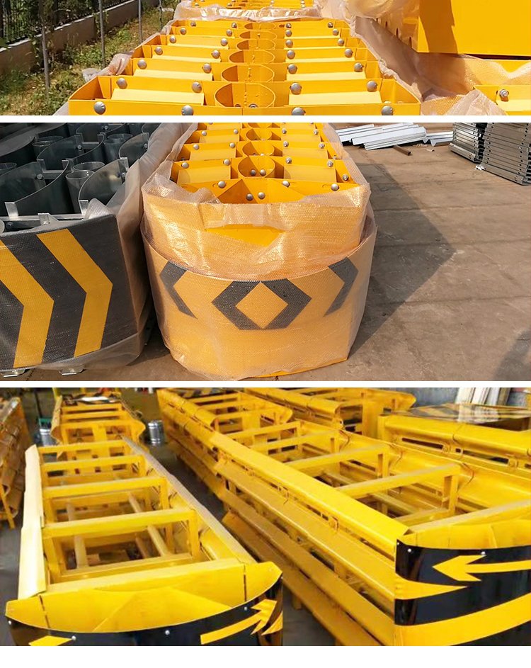 防撞垫可分为动能原理和动量守恒原理两大类。动能原理防撞垫是通过设置在防撞物前的可破坏的或产生塑性变形的材料或结构,?通过缓冲或吸能从而吸收行驶车辆的动能,?这种结构需刚性支撑或阻挡,?使吸能材料或结构产生变形以减少对车辆的撞击力。另一种是按照动量守恒定律,?通过设置在防撞物体前的一些装砂、装水容器转移失控车辆的动量,?起到缓冲作用的结构。