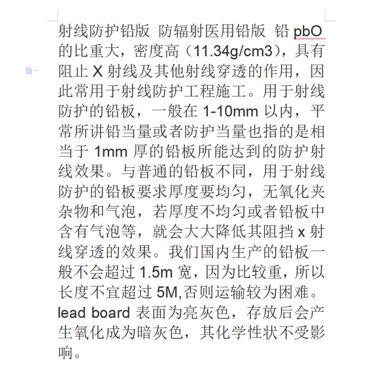 产品用途 | 保护人体防止受到射线侵害 | ||