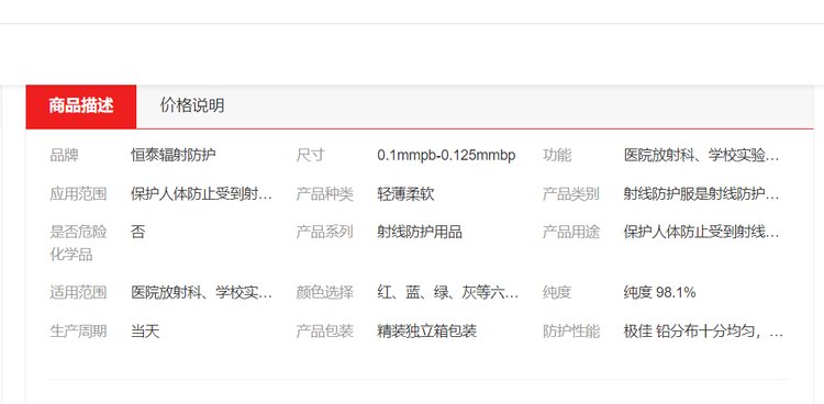 防护性能极佳 铅分布十分均匀,正常使用铅当量不会衰减;耐磨、易清洗表面材料程度保护您的身体